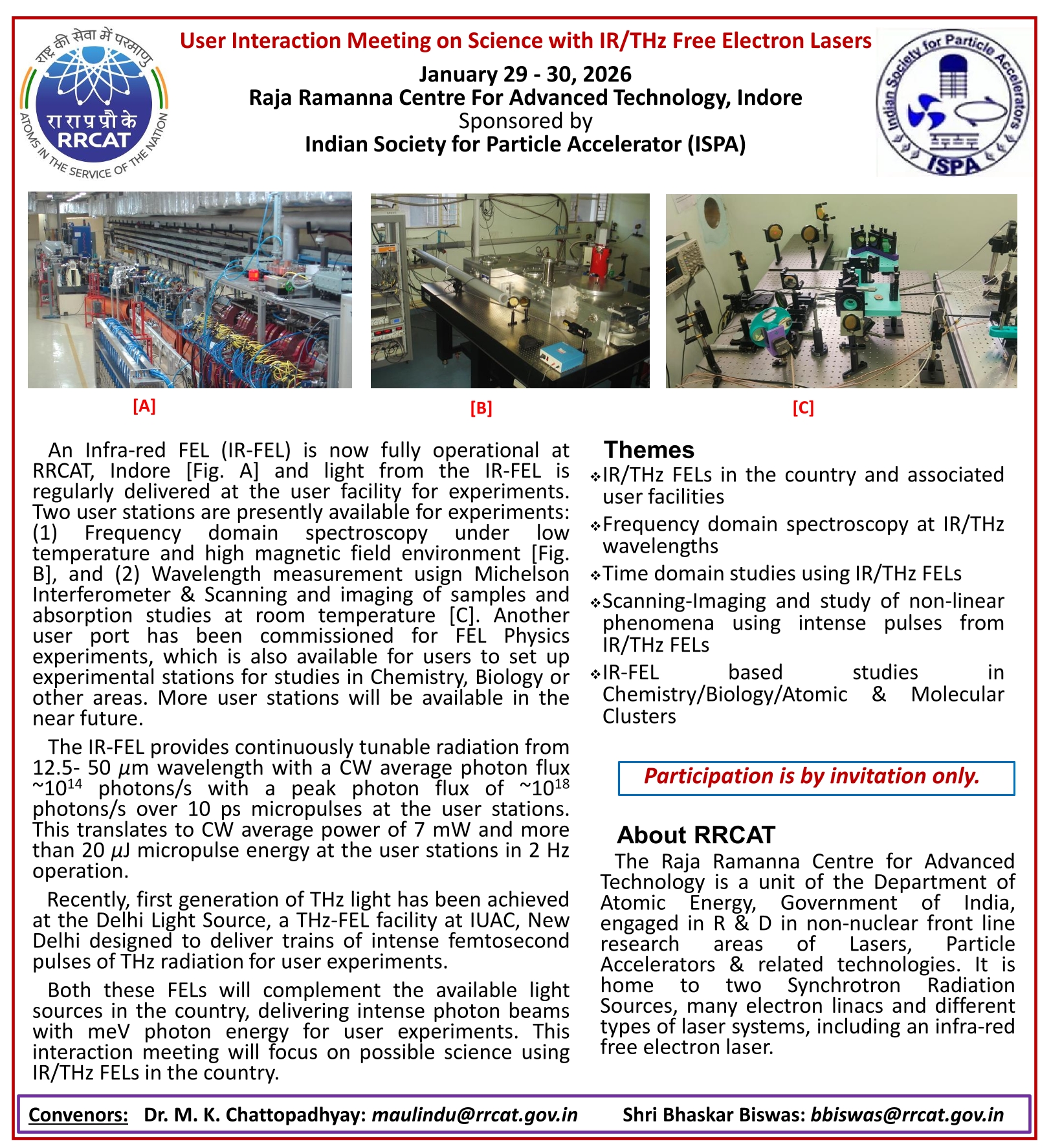 "User Interaction Meeting on Science with IR/THz Free Electron Lasers" 29th and 30th Jan-2026, Homi Sethna Hall, Convention Centre, RRCAT Indore Click here to view / download program schedule